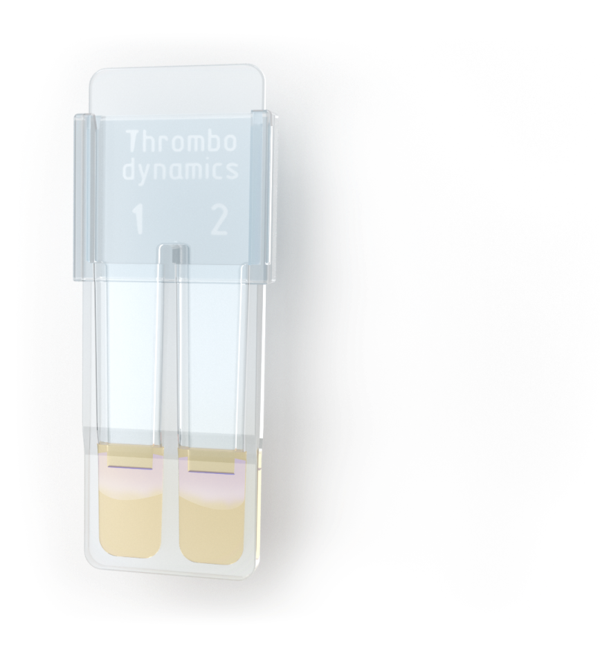 В тесте Тромбодинамика воспроизведены физиологические механизмы запуска и развития процесса свёртывания крови в ответ на повреждение сосудистой стенки.