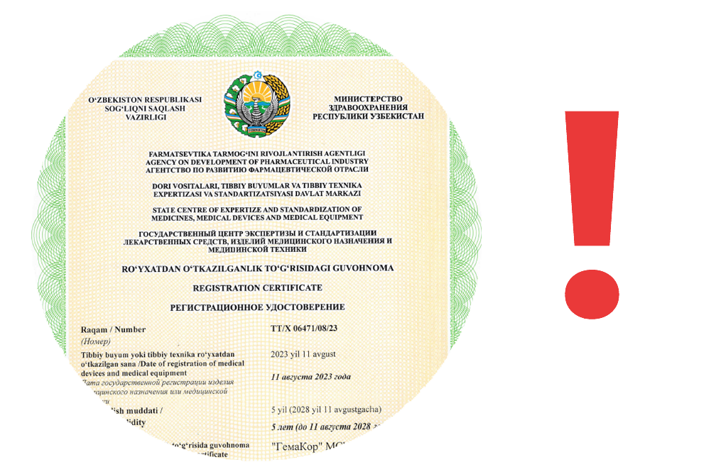 Получено Регистрационное удостоверение в Республике Узбекистан