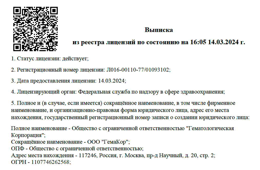 ГемаКор обновил лицензию на техническое обслуживание медицинских изделий