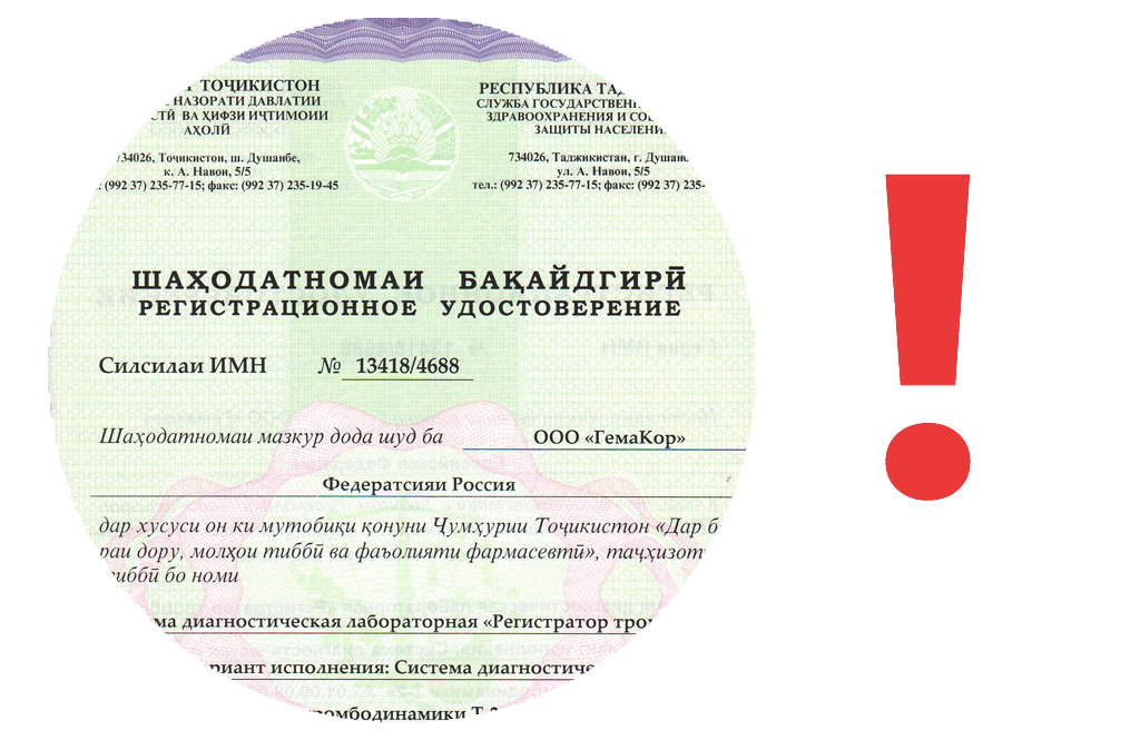 Оборудование и расходные материалы для Тромбодинамики зарегистрированы в Республике Таджикистан!